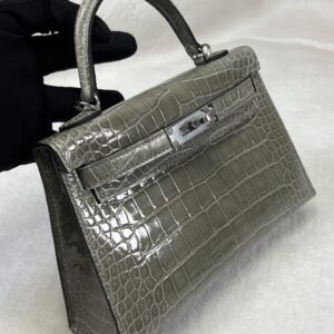 Kylie II 19cm Silver Buckle Crystal Gray Glossy American Crocodile Leather Hand-sewn Waxed Threads