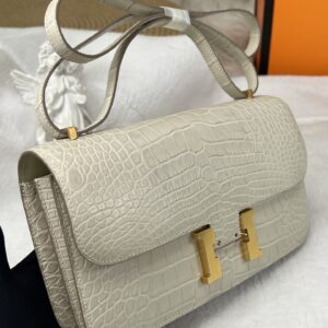 Kang Kang 26cm Silver Buckle Glacier White Matte American Crocodile Leather Hand-sewn Waxed Threads