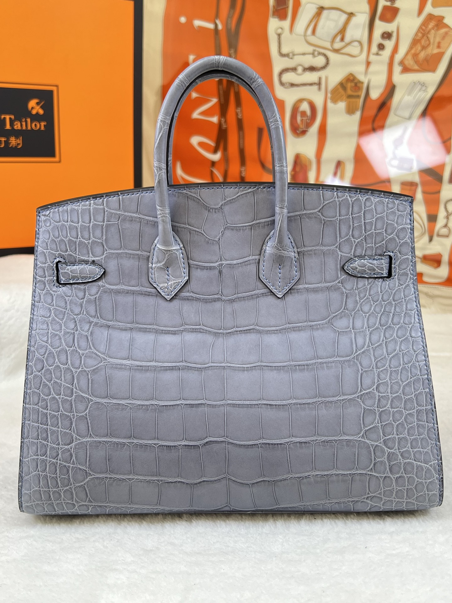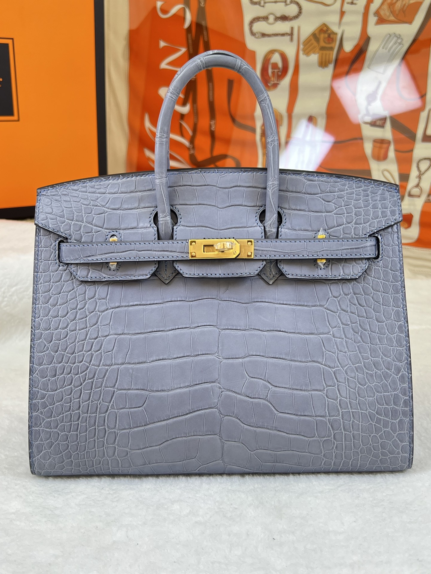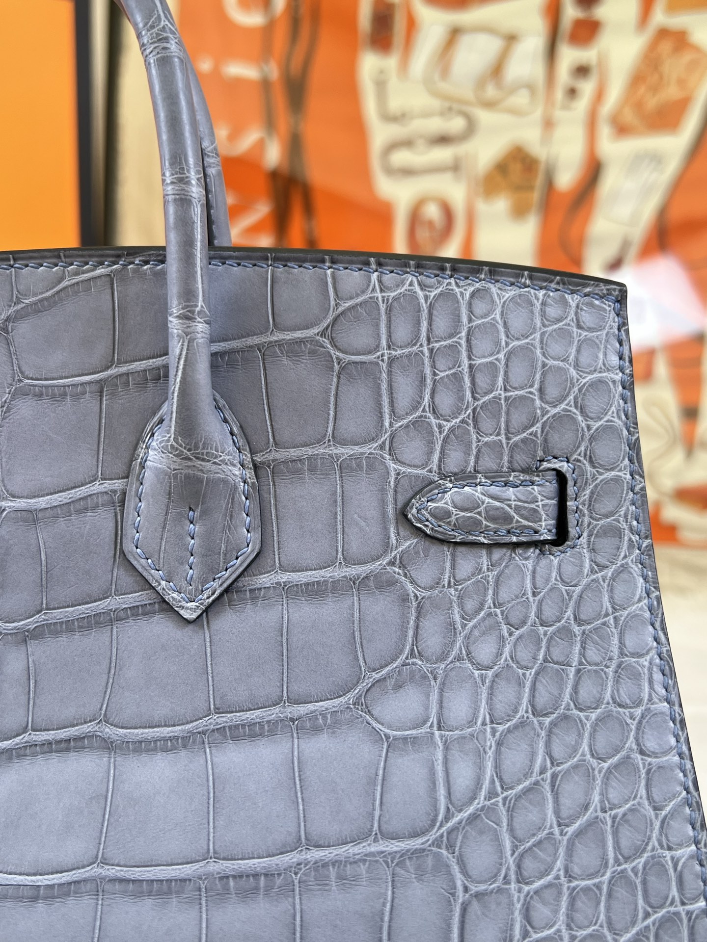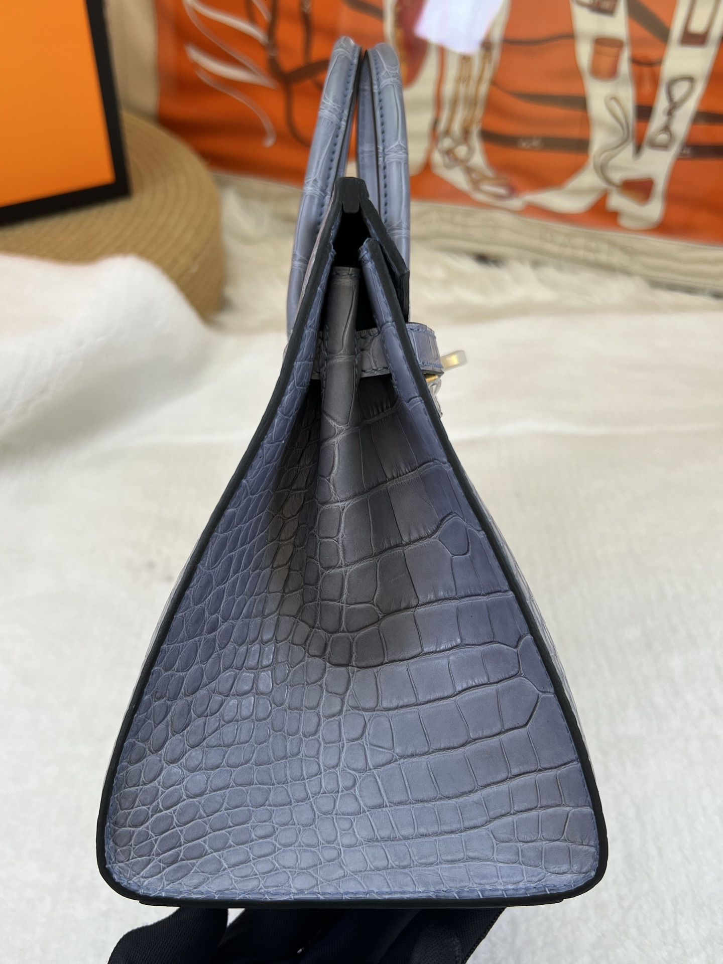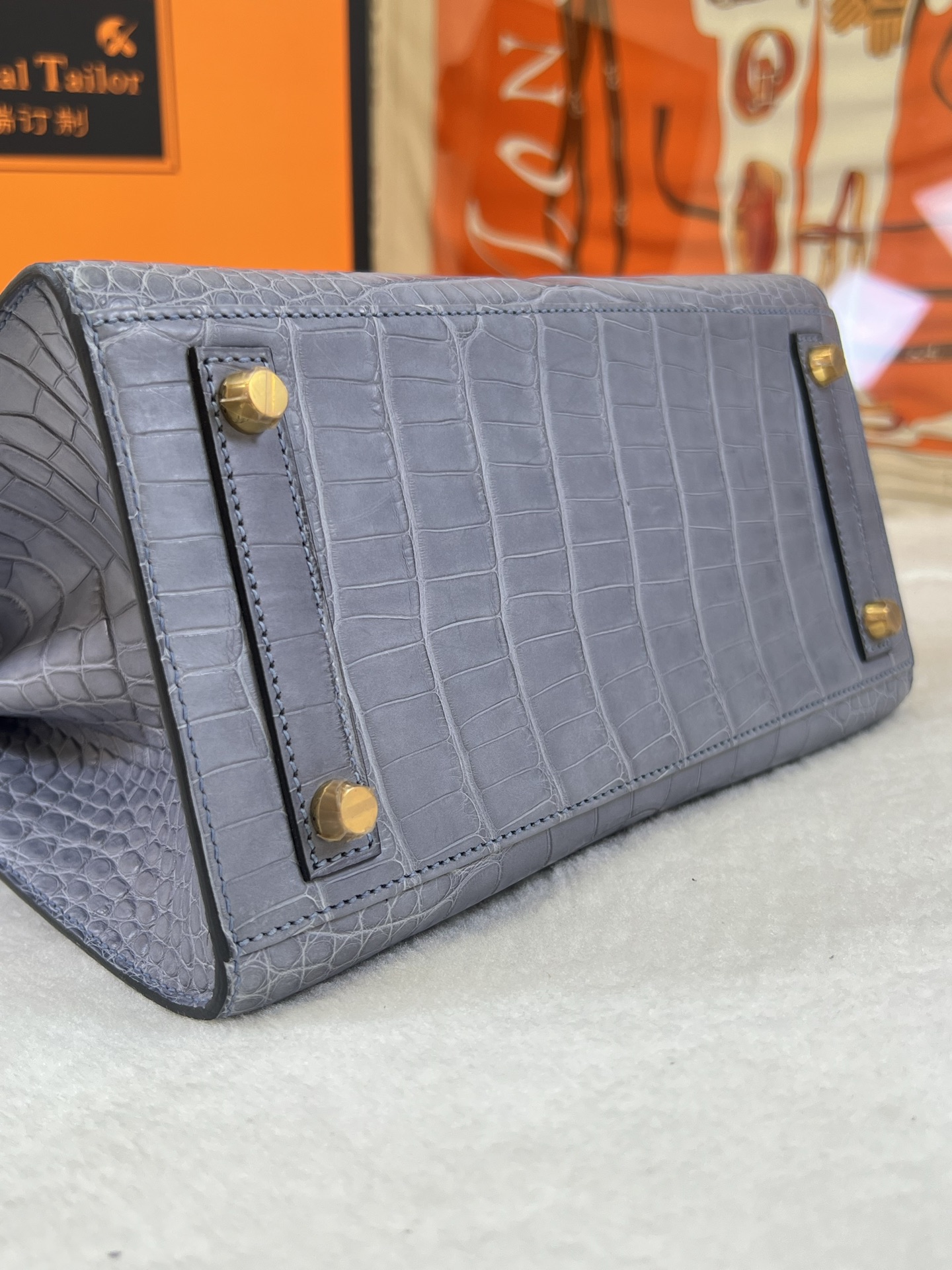 Ostrich leather Peacock blue Silver buckle Platinum 25