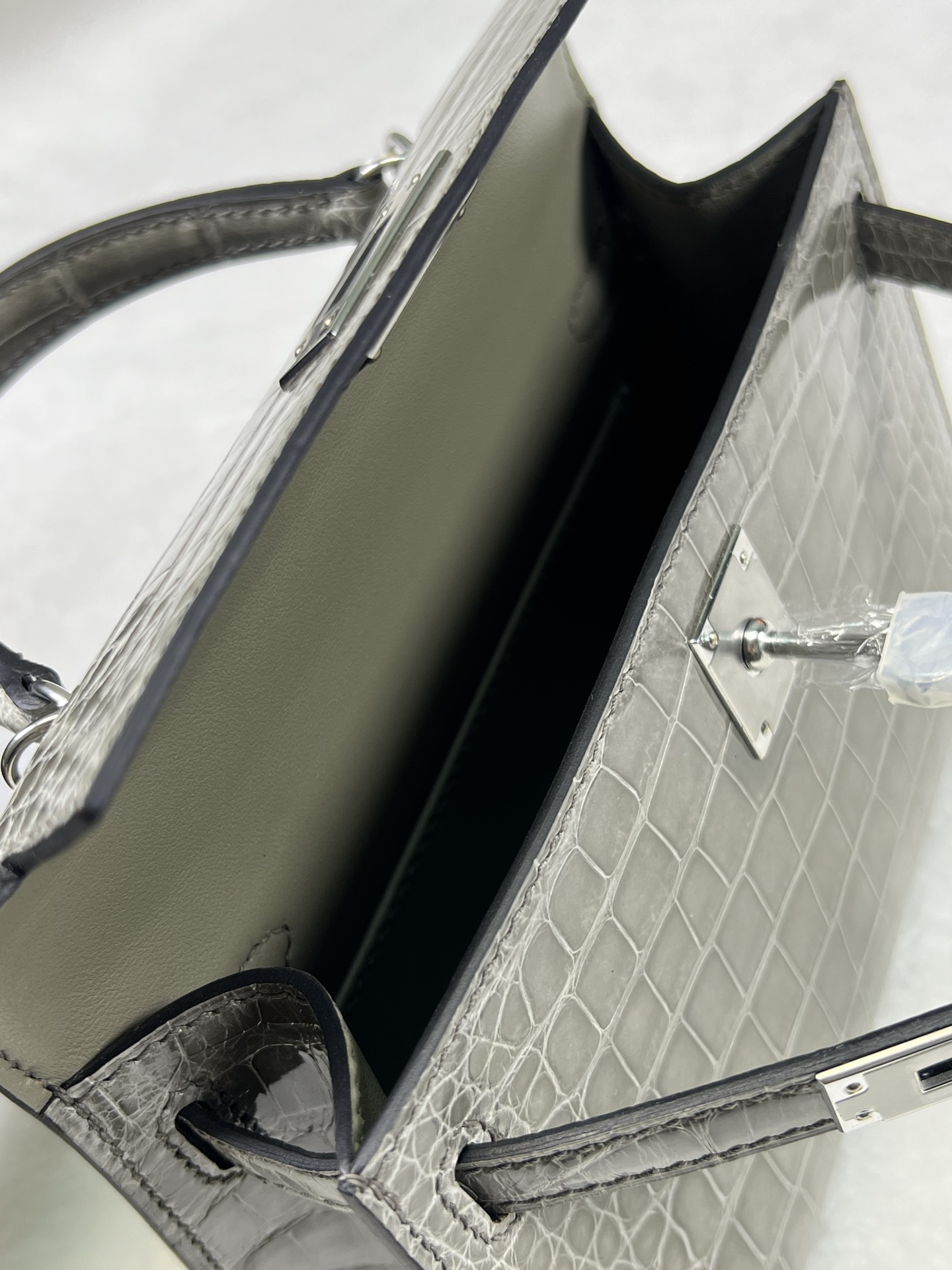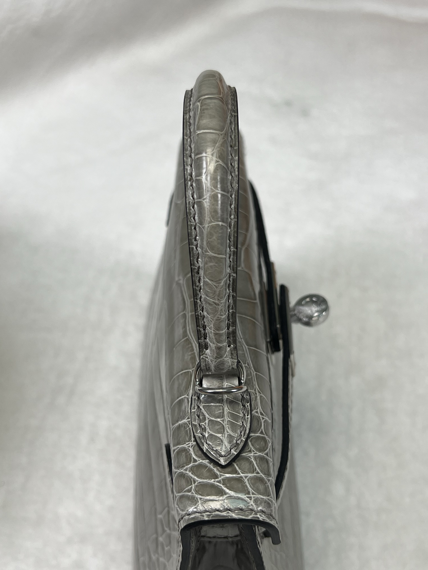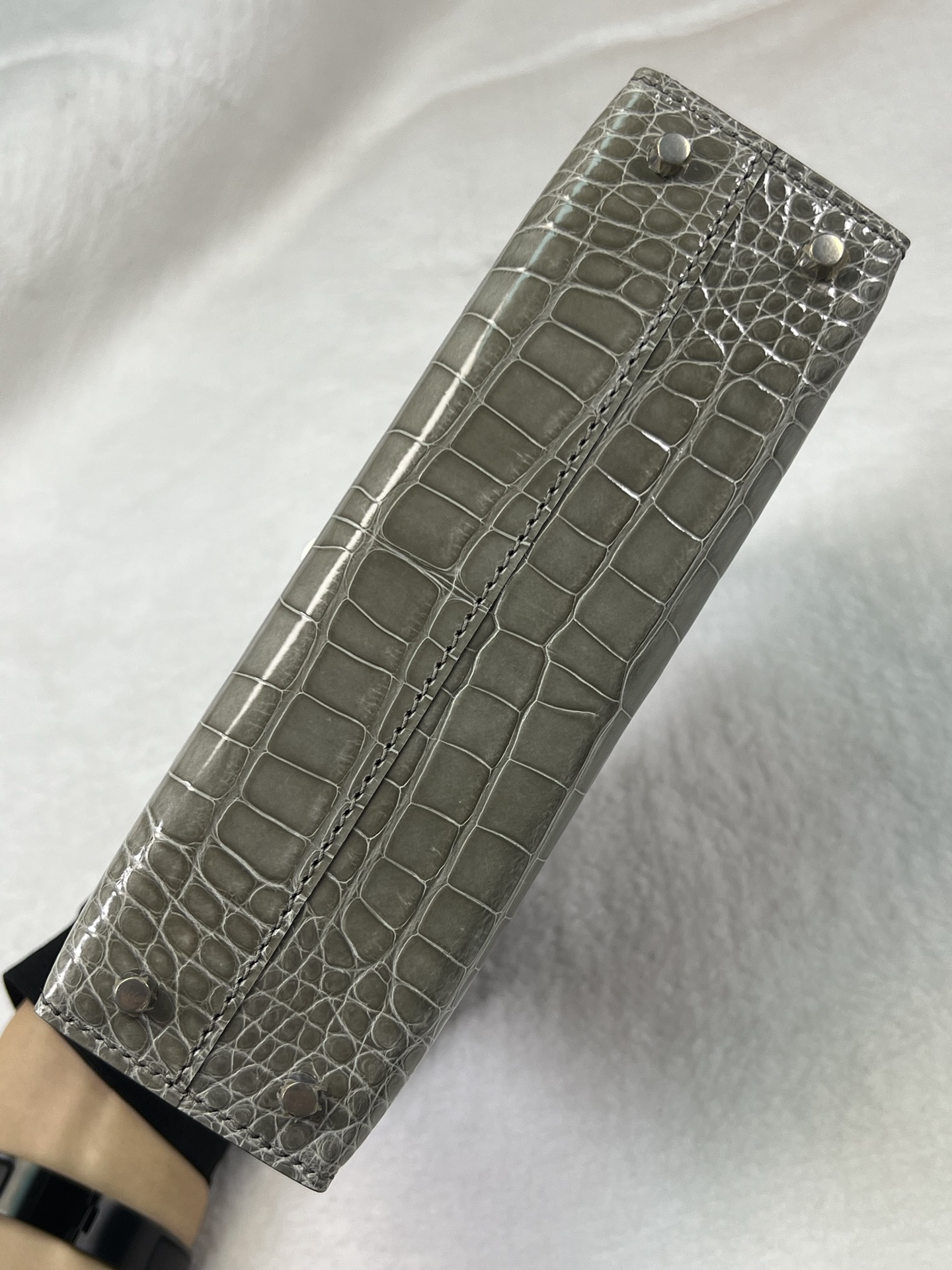 Kang Kang 26cm Silver Buckle Glacier White Matte American Crocodile Leather Hand-sewn Waxed Threads