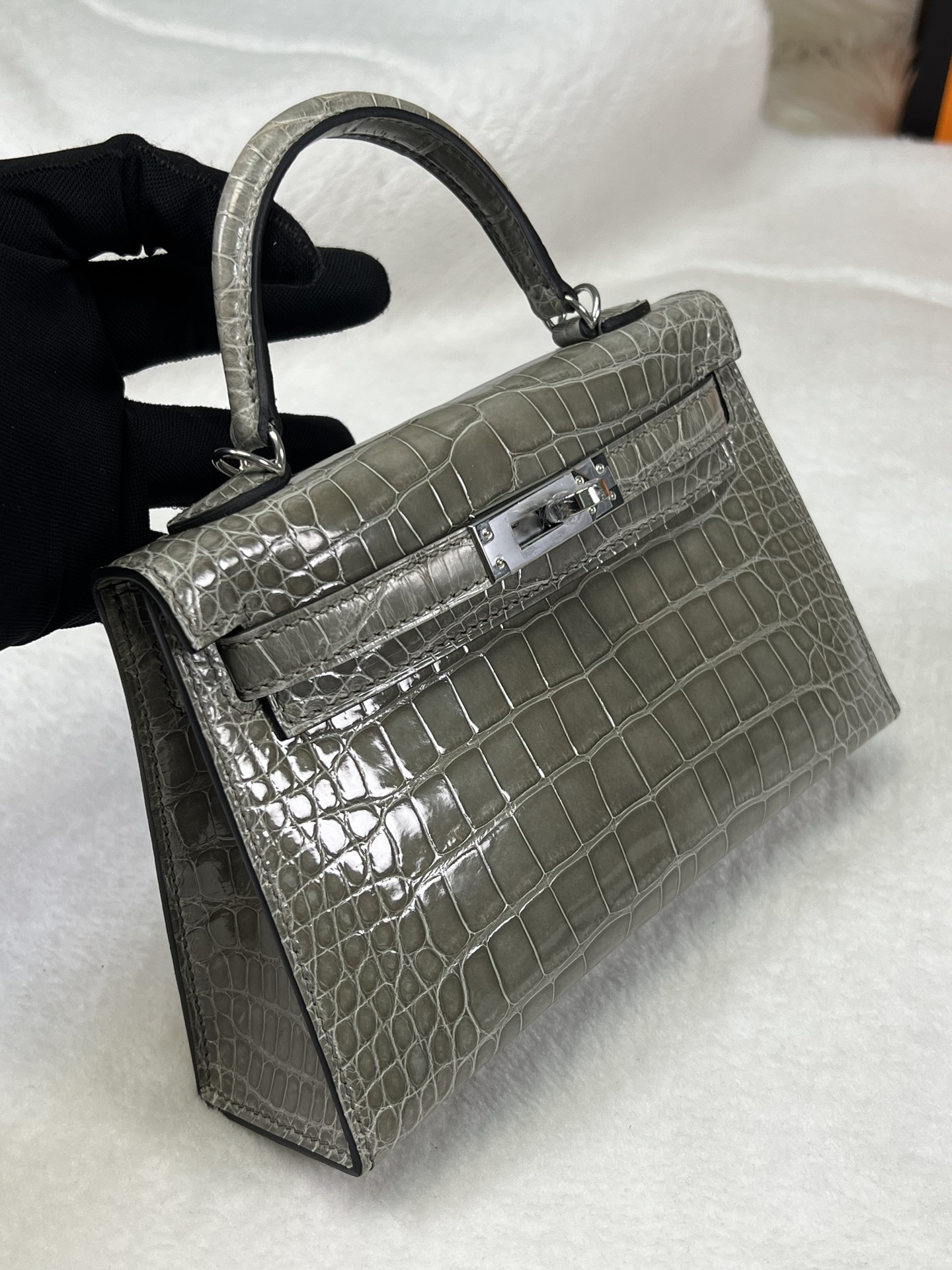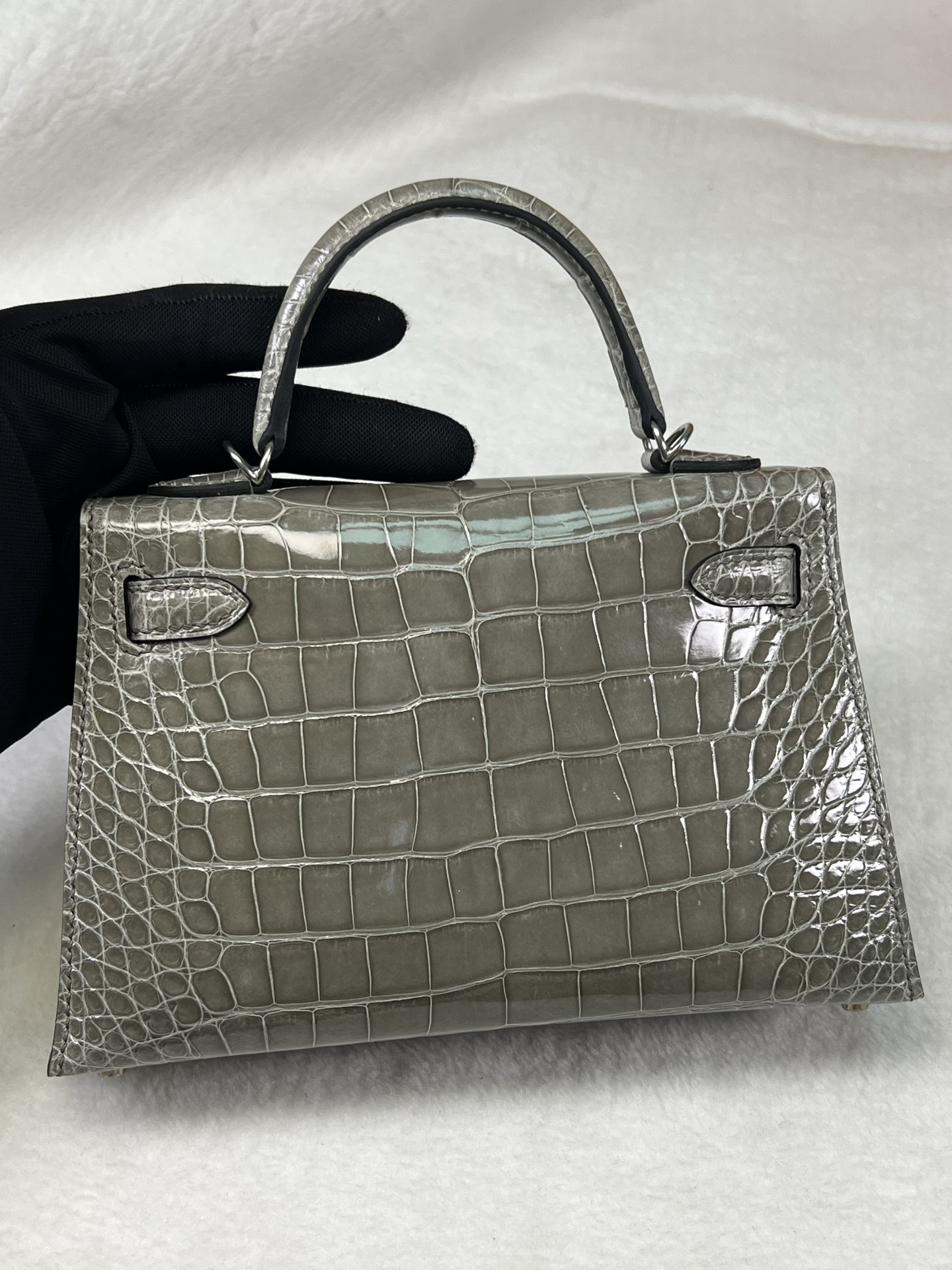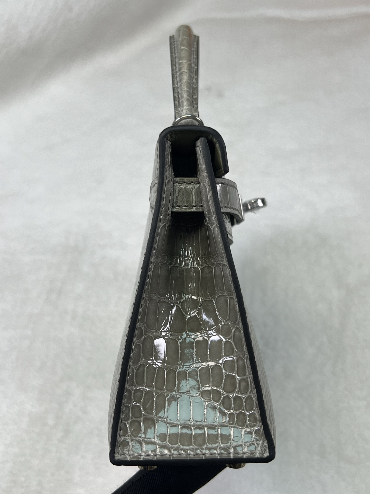 Kang Kang 26cm Silver Buckle Glacier White Matte American Crocodile Leather Hand-sewn Waxed Threads