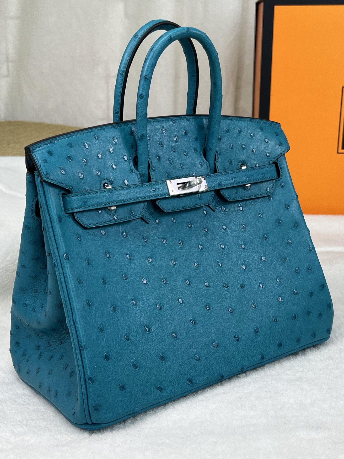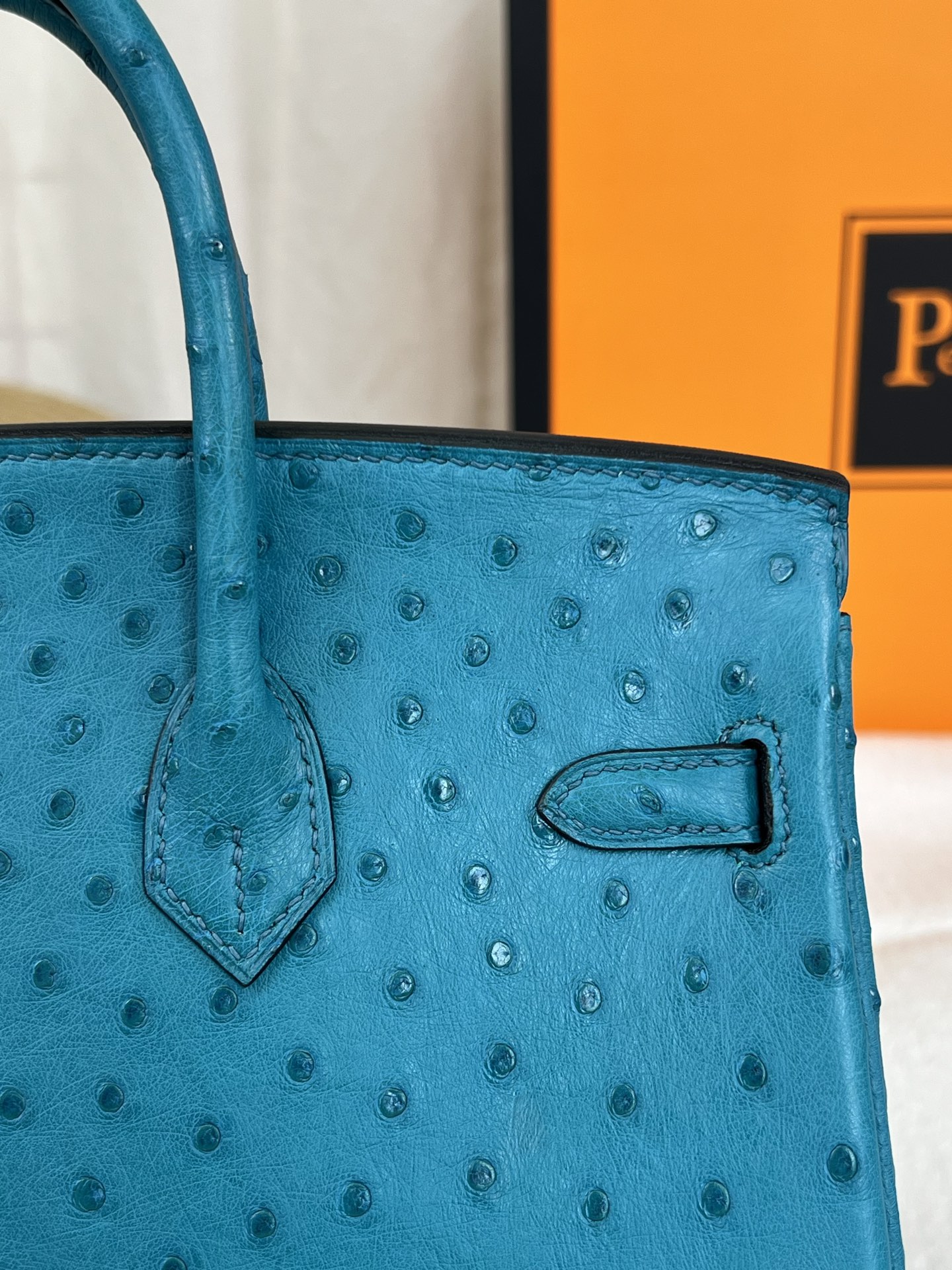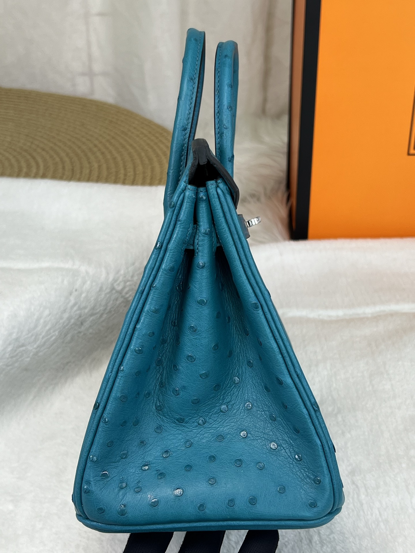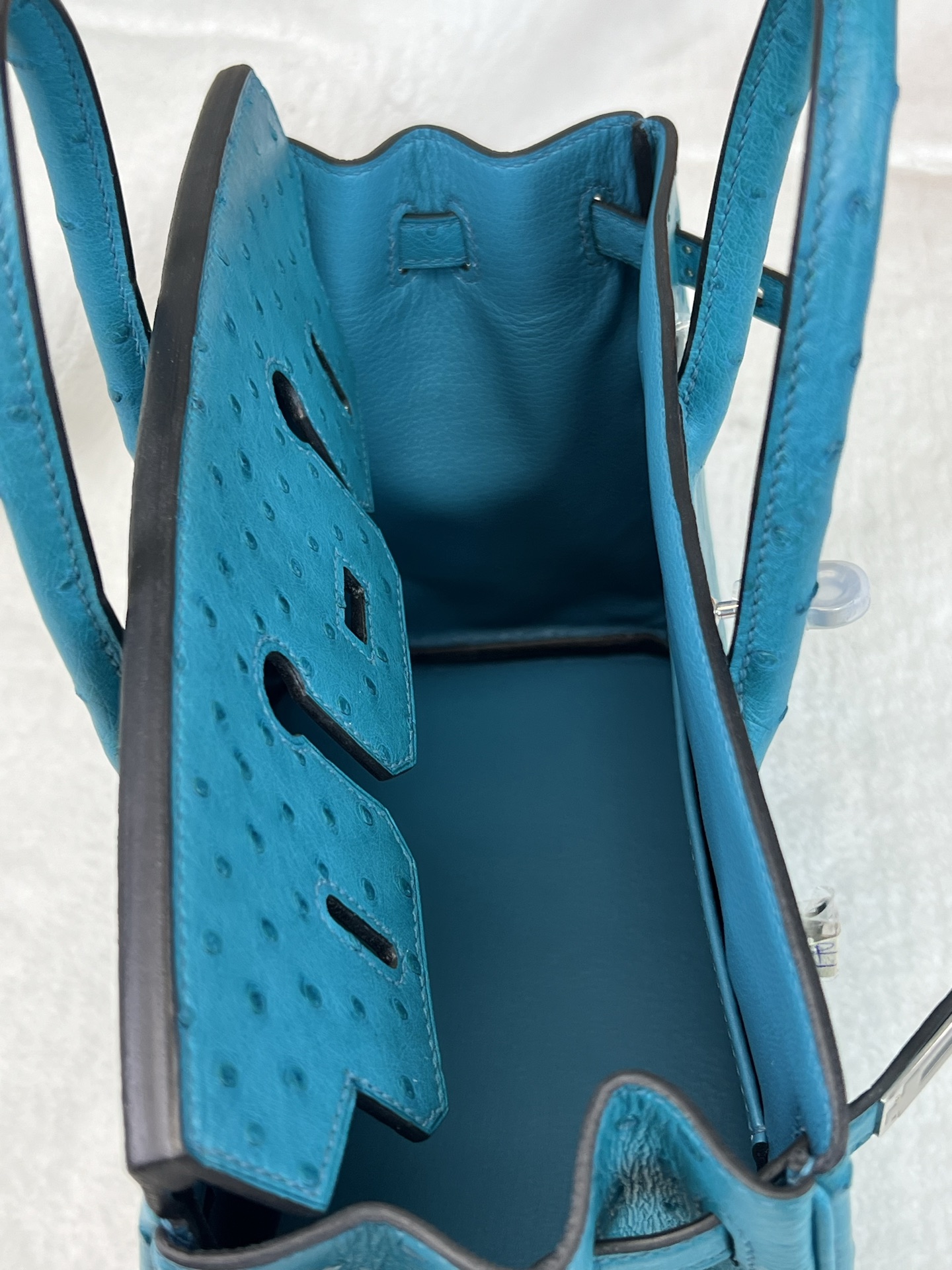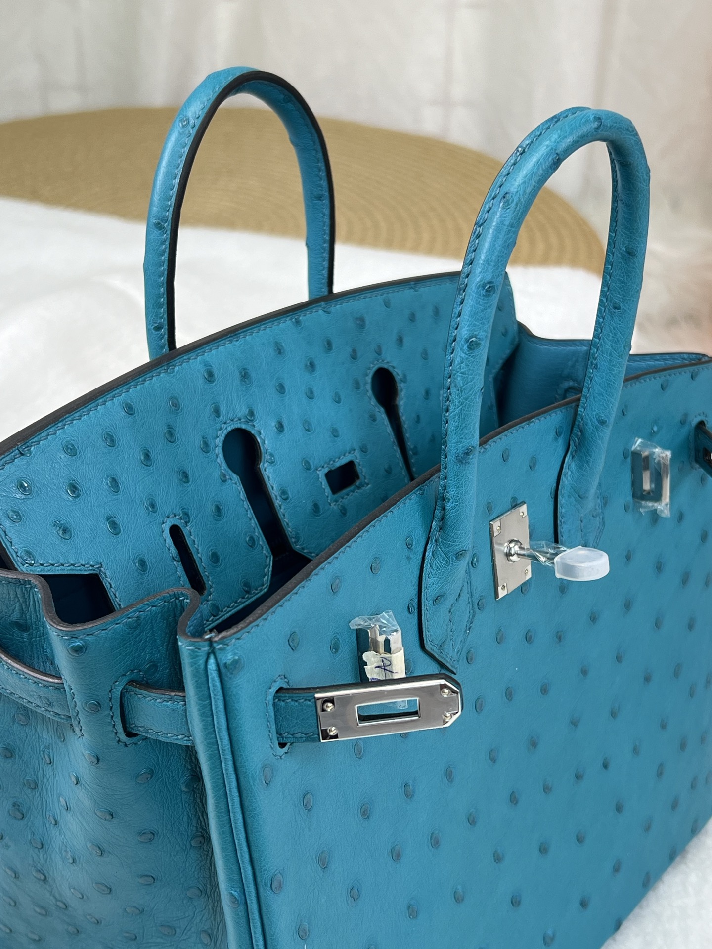 Birkin Platinum 25cm Original hcp Bay Crocodile Silver Buckle Original Sewn Waxed Thread Bright Blue
